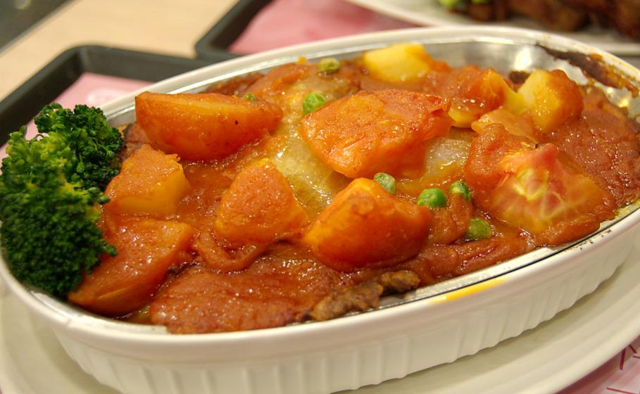 一道“罐焖牛肉”值得一提。菜色主体是俄式的炖牛肉,并参考了法餐的传统,在罐子上封一层黄油酥皮。最有意思的是,有些店家还会根据本土特色,把黄油酥皮换成了山东风味的“烙大饼”——用勺子背面用力敲开才能吃。