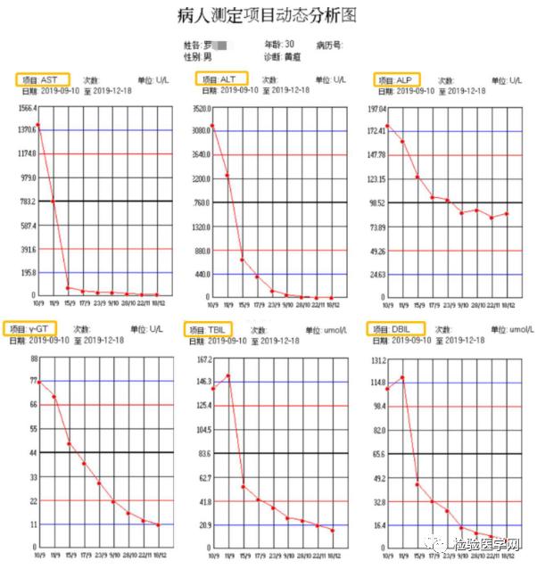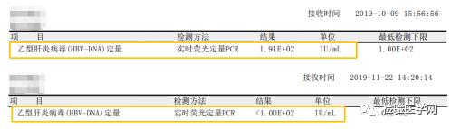 10月9日、11月22日、12月2日、12月18日,该患者随访复诊,复查肝功能、乙肝DNA与乙肝血清学标志物,结果如下: