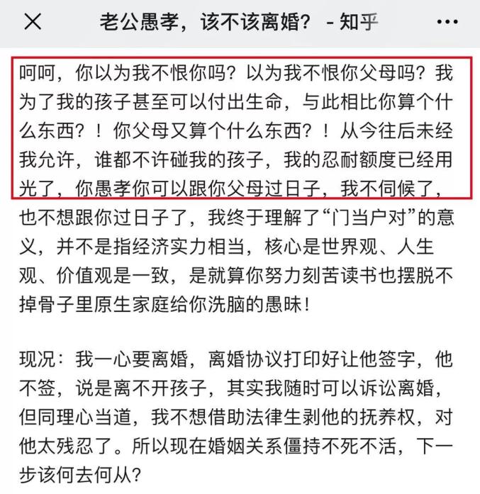 知乎上曾有一篇帖子,引起过网友热议,这篇帖子的名字叫:老公愚孝,该不该离婚?