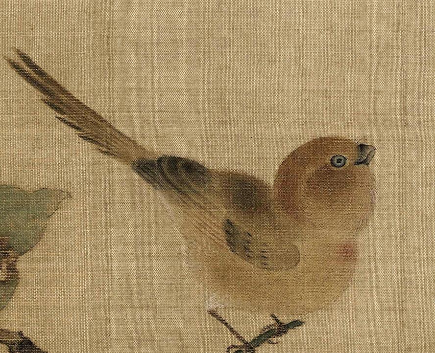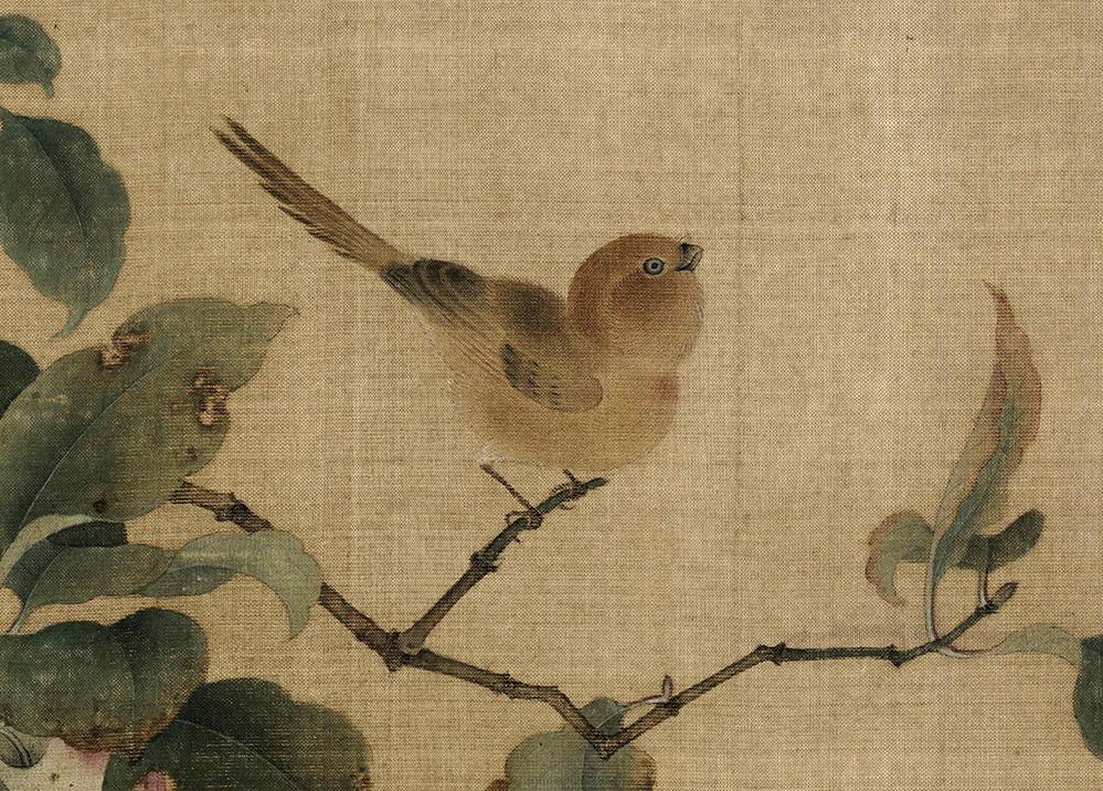 画家就把画面定格在了这一瞬间,但又给人一种呼之欲出的动感:鸟雀将去,枝条会随着鸟的起飞猛然一颤,果实和树叶也随之上下摇曳。