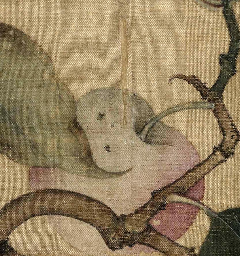 欣赏完《来禽帖》,我们再来欣赏一幅宋画《果熟来禽图》。画家林椿以折枝画的形式,将目光锁定了深秋时节果实累累的枝头。