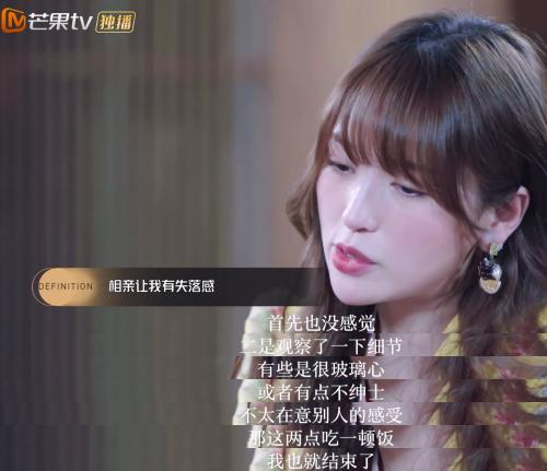 通过父母和朋友的介绍,她相亲过的人形形色色,但都因不适合无果,被问到为什么时,她这样回答:
