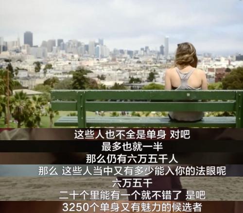 国外有个短视频——《你相信有灵魂伴侣吗》,男主角对女主角计算遇到灵魂伴侣的概率: