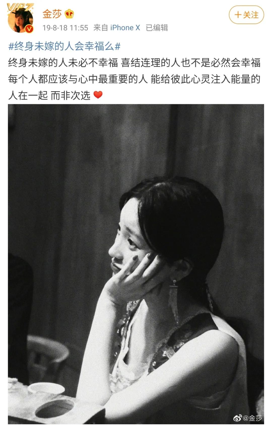 看完她的整个采访节目,她姐是诧异的,因为金莎打破了我对女明星的常规认知,同时,我更惊讶于她“不一般”的爱情观。
