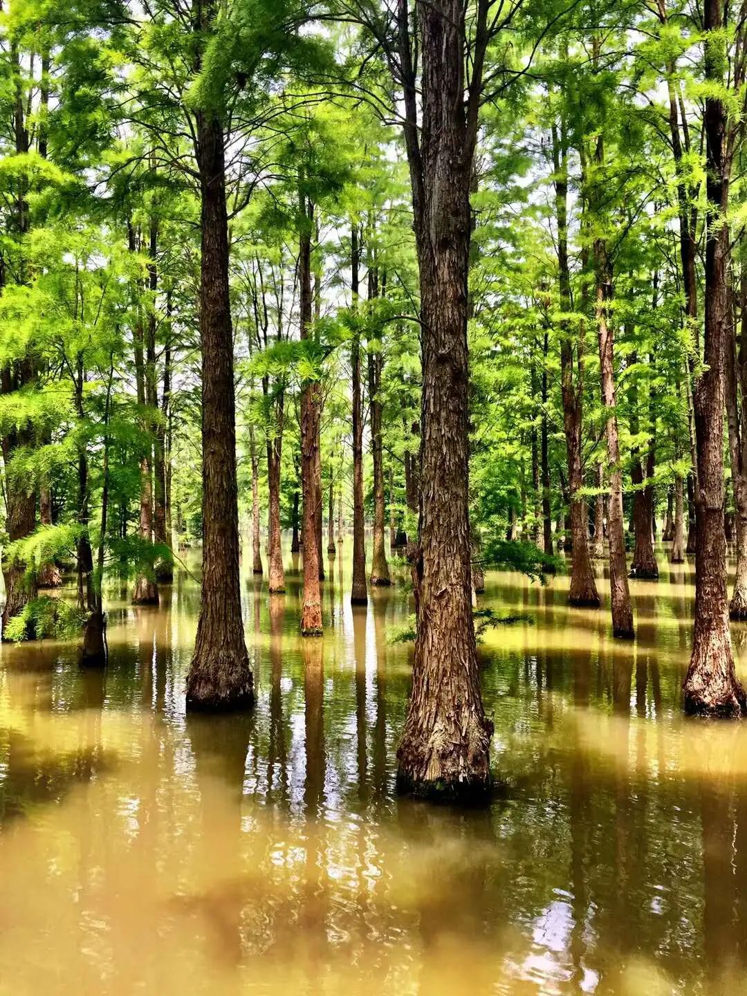 高大的水杉生长在水里,