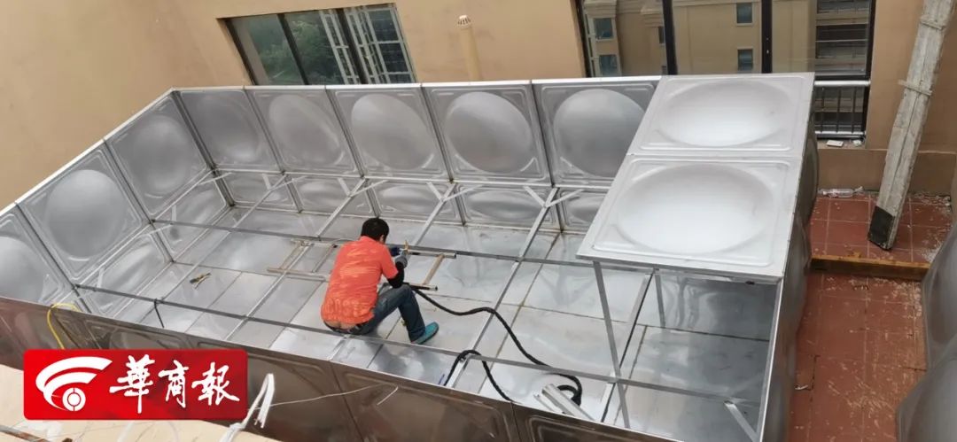 ▲这几天,住在西安浐灞普华浅水湾熙岸8号楼的业主心里一直担心——小区在这栋楼上又要建一个消防水箱。“楼顶已经有个18吨的消防水箱了,再建一个,对整栋楼有危险吗?” 业主很担心。据介绍,8号楼现有的消防水箱承担着小区多栋楼的消防供水任务,新建水箱也一样。华商报记者介入采访后,物业发布通知称:将调整安装位置,预计月底前将现未安装完的消防水箱拆除另行安装。