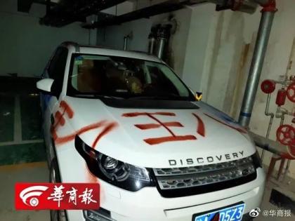 ▲杨先生是西安城西西旅逸都小区的业主,6月19日早上发现停在小区地库的路虎车的车身被喷了一圈漆,还有辱骂的字眼…有业主在车库的柱子下面,发现红色袋子里装着两罐快用完的自喷漆,“怀疑这就是当晚的作案工具。” 监控显示,19日凌晨有两人鬼鬼祟祟进入车库,一人手里提着红色袋子。 目前,线索均已经提交给警方。