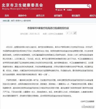 ▲6月20日,北京市副市长卢彦针对当天检查发现的相关单位不符合《传染病防治法》规定、院感防控要求和实验室生物安全管理的问题,对北京京煤集团总医院、北京联科中医肾病医院、北京迈基诺基因科技有限责任公司医学检验所、百世诺(北京)医学检验实验室有限公司负责人,以及石景山区、门头沟区、顺义区、昌平区分管领导和京煤集团负责人进行约谈。