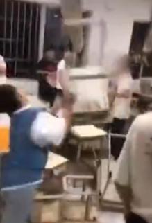 ▲6月19日,广西玉林一学校发生一起多名学生围殴同学事件。画面中可以看到,有几名学生甚至搬起课桌椅猛砸被打同学,同时有围观学生起哄。对于此事,学校工作人员称,学校已对打人的学生进行了批评教育,但没有具体处分。被打的学生已被家长带回家观察。