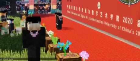 ▲近日,中国传媒大学一学院在游戏里还原校园,举行毕业作品展,同时进行毕业典礼。同学们可以在游戏里领取学士服、走毕业红毯合影、听书记院长讲话。主持人还说:“请不要在红毯中央逗留太久” “也不要打架”。