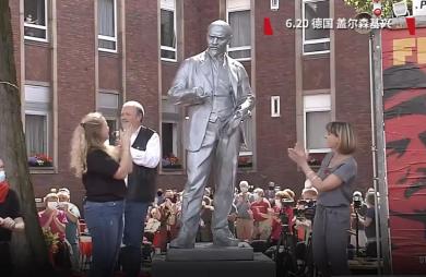 ▲20日,德国马克思列宁主义党在德国西部城市盖尔森基兴树立起一座列宁雕像,并举行了盛大的揭幕仪式。随着雕像揭幕,现场群众鼓起掌,并齐声唱起《国际歌》。当地政府强烈反对竖立列宁雕像,他们还将德国马列党告上法庭,但法院最终驳回上诉,批准了雕像的安装。