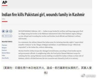 ▲据美联社报道,巴基斯坦军方及当地官员21日表示,当地时间20日晚间,印度军队向克什米尔地区巴基斯坦实际控制边界沿线的村庄开火,造成一名13岁女童死亡,其母亲和兄弟受伤。