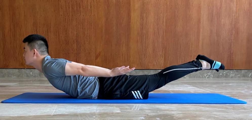 还有一招是“飞燕式”:身体俯卧,将双手、双脚、头部一齐抬起。他建议,老人和肥胖者四肢力量不够,可以只抬起上半身,这种俯卧后伸锻炼,也有锻炼腰部核心肌群的效果。
