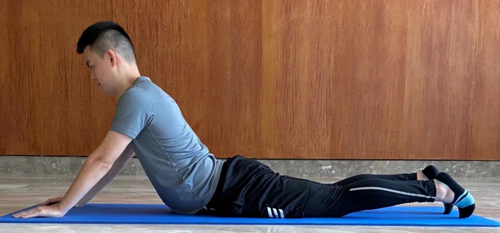 要增强腰椎的稳定性,必须增强腰部核心肌群的力量。悟出这一点后,潘浩便在家坚持进行“五点式”锻炼:身体仰卧,用头、双手、双脚支撑,抬起腰部,使身体保持拱桥姿态。