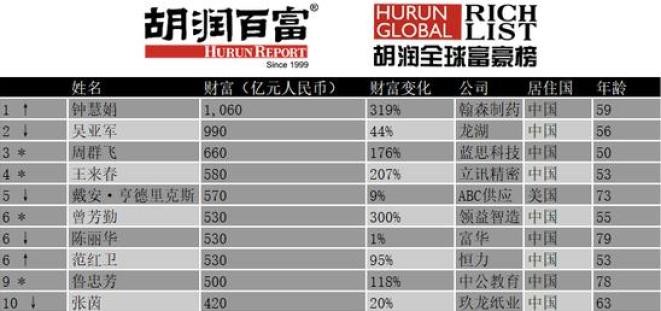 2020胡润全球白手起家女富豪榜,