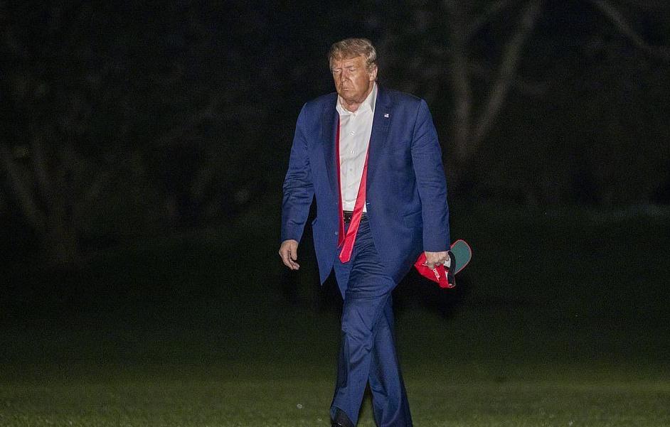 “离开竞选集会会场后,他(美国总统特朗普)没有大吼大叫,反而很沉默。当他返回白宫走出专机时,松开的领带绕在脖子上。