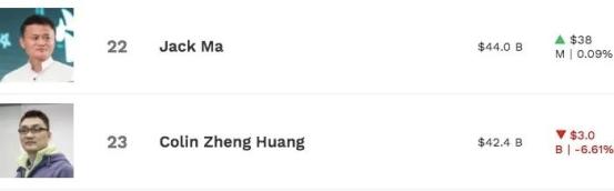 值得注意的是,本周末,马云的身家曾短暂被黄峥超越,失去中国第二富豪的名号。但由于拼多多美股在本周一下跌6.61%,黄峥的身家在福布斯实时富豪榜上再次落后于马云。