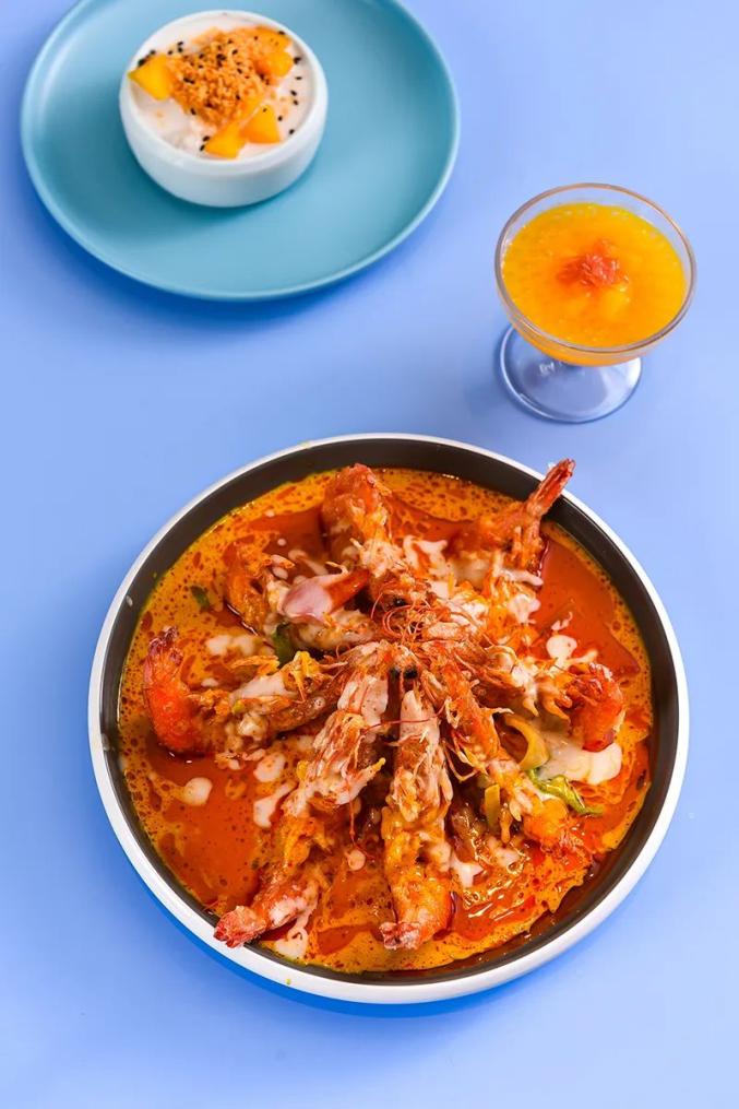 说辣,泰式酸辣比不得川味牛油辛香厚重,讲究的自然不在辣度,在鲜。鲫鱼熬制数小时的浓汤底,需投入椰汁、泰国香菜与数十种香料包,新鲜的食材方才可出鲜美之味。