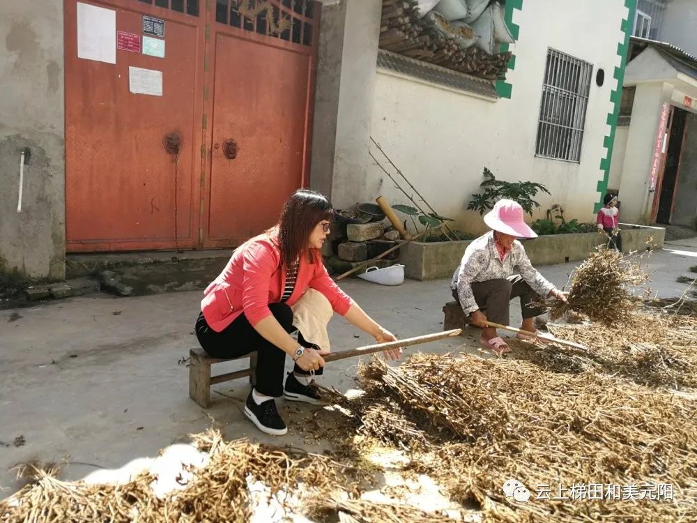 图片中这位穿着红色外套,与村民一起劳作的女子就是李飞飞。李飞飞是2018年3月从红河州文化旅游局派到元阳县马街乡马街村委会的一名驻村干部。那时,工作性质和工作环境的突然转变让她一时难以适应。但她迅速调整状态,带着满腔的热情和责任担当,义无反顾投身到脱贫攻坚这场硬战中。