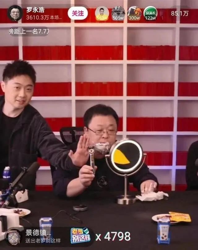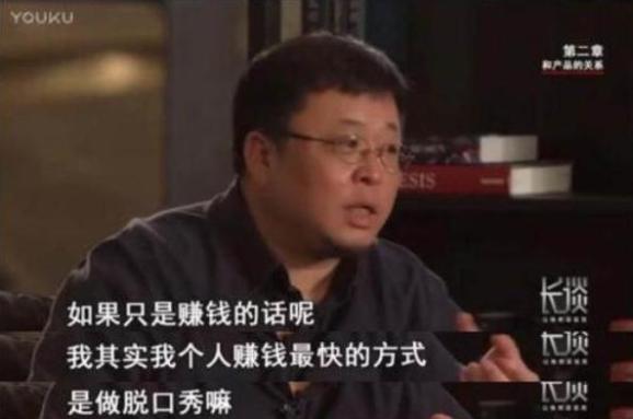 和上次直播,说不是为了赚钱一样。老罗说做脱口秀,远不如直播赚钱。不对啊老罗,在2017年的《长谈》里,你不是对罗振宇说脱口秀最赚钱吗?“其实我个人赚钱最快的方式,是做脱口秀嘛。一签直接就是,签一个年约,就是上千万到一个亿。”