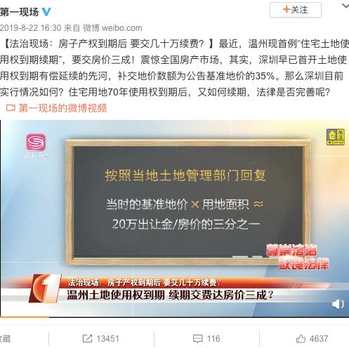对于这个问题,温州曾出现这样一件事:一部分市民正常买卖二手房后却无法完成交易,原因是土地到期了。如果要续期,必须缴纳占房价总额约三分之一的土地出让金。其中,不少市民发现,他们持有的土地证上写着土地年限20年到期。