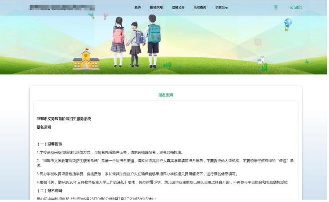 2. 邯郸市“义务教育阶段招生服务系统”是唯一合法报名渠道,请家长 或其监护人真实准确填写报名信息,不要委托他人或机构,不要相信任何机 构的“保送”承诺。