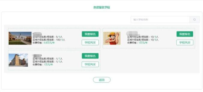 <我要报名> 按钮;(说明:每名适龄学生只能报名 1 所民办学校)。我要报名>