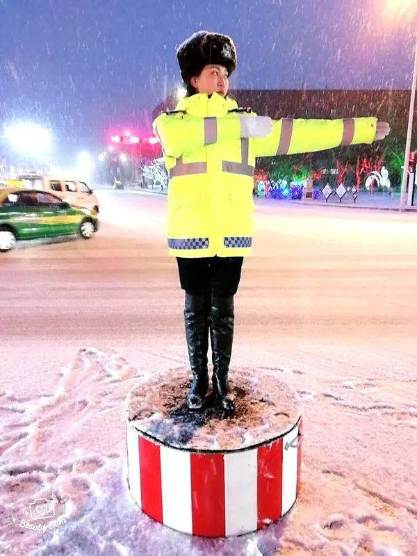 2018年春天,梅河口迎来了第一场大暴雨,当时正值晚高峰,张瀚文同志所在的路口突然出现拥堵,她立即带领队员冒雨指挥过往车辆通行,2个多小时后交通秩序恢复了正常,她冻得嘴唇发紫,从头到脚全部湿透,可她却说:“只要交通秩序恢复正常就好”。