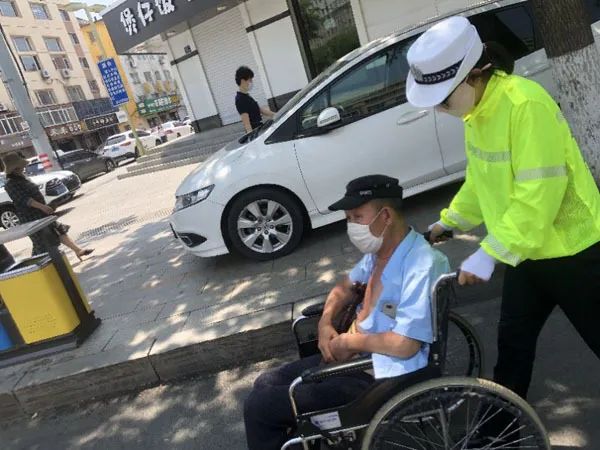 2020年6月20日11时30分许,张瀚文带领王婉君、高鑫雅执勤巡逻至站前路口时,发现一位坐着轮椅的老大爷停在马路中间,神态不安,且一直喃喃自语。老人身边过往车辆一直来回穿梭疾驶,情况非常危险。此情景,被正在此路口执勤女子中队警员看在眼里,急在心上,生怕老人发生交通意外。张瀚文与高鑫雅立即上前将老人带到附近安全地带并向老人了解情况。经询问得知,老人今年已80岁高龄,孤身一人前往新华医院看病,没想到走到站前路附近路口时,却一时辨不清方向,结果就迷路了。由于老人生病体力不支,于是张瀚文当即决定用警车将送老人去新华医院。当老大爷被推到新华医院门口时,他兴奋地说:“就是这里,就是这所医院。”老大爷紧紧握着她的手,激动地说:“谢谢你们!警察同志!你们是有爱心的好姑娘啊!”