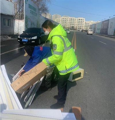 2019年2月24日上午,她带领辅警宗默、赵容歌在民安路铁北转盘附近路段巡逻执勤时,看到一位老大娘推着人力三轮车不慎发生侧翻,车上的东西散落一地。张瀚文同志带领队员立即将警车靠边停好,一边疏导过往车辆,一边帮助老大娘捡车上散落的物品。路人见状,纷纷过来帮忙,现场清理结束后,老大娘激动地连连道谢。