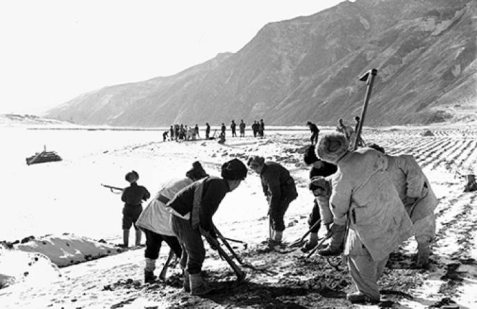 临撤军前,我们和当地群众共同栽了5000株树。种树时往往都是两个人在一起,一人挖坑,一人栽树、浇水。一般一个是志愿军,一个是当地老百姓。