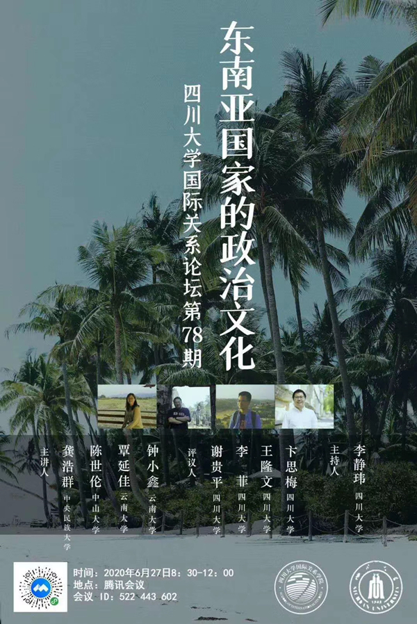本次线上论坛,几位主讲嘉宾将分别以“社会资本与泰国公共卫生体系的基础优势”、“国别个案、比较政策、田野方法与跨境治理:以柬埔寨研究为例”、“足球与越南的民族主义”、“后军治时代缅甸日常政治转型”为题做主题演讲,并由评议人进行点评、提问。