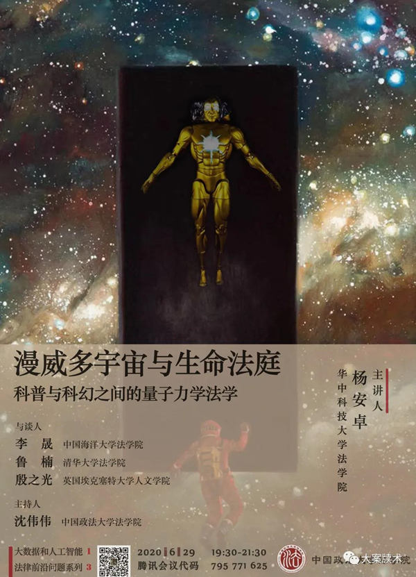 有关大数据与人工智能时代的法律前沿问题,本次讲座邀请华中科技大学法学院讲师杨安卓主讲,以漫威的科幻电影来谈谈科普与科幻之间的量子力学法学。