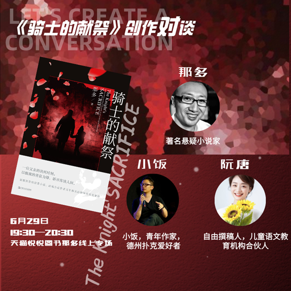 《骑士的献祭》是那多继《十九年间谋杀小叙》之后的创作新峰,6月29日,他将和朋友、作家小饭、阮唐一起走进直播间,聊聊这部新作。