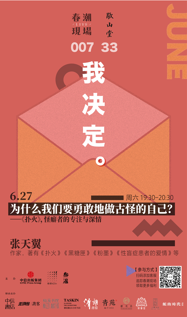 我们每个人身上或多或少都有一些“少数派”的成分,本期嘉宾张天翼笔下的人物多少都有点奇怪,她说,“怪”这件事,我很有经验。在本次的分享中她将结合自己的成长与创作经历,让我们学会与自己的古怪和解。