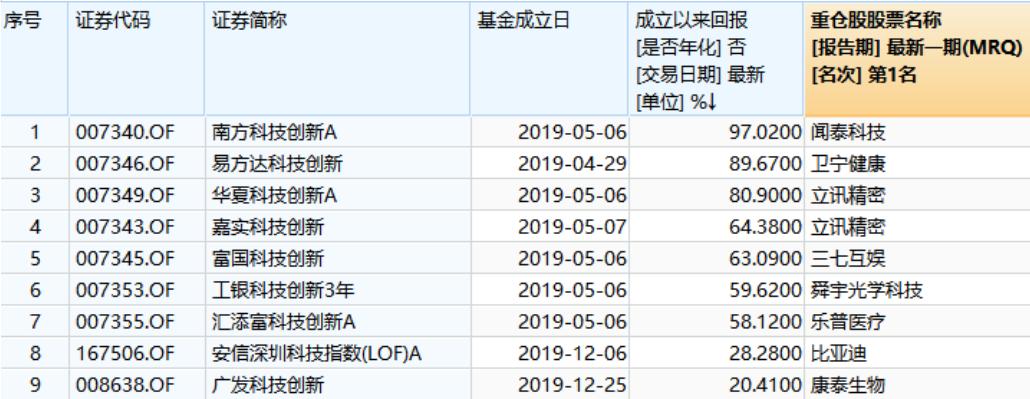 根据Wind数据显示,已成立的科创主题基金共有29只,于2019年成立的共有如下9只。整体来看,去年成立的科创主题自成立以来均取得正回报。其中,南方科技创新基金自成立以来回报高达97.02%,位居第一;易方达科技创新基金自成立以来累计获得回报89.67%,排在第二;华夏科技创新基金自成立以来获得回报80.90%,排在第三。