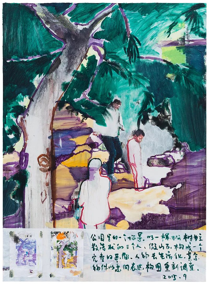 这些作品是艺术家平时在古玩市场上收集来的中国七八十年代所拍摄的家庭生活照片和旅游纪念照。孙彦初用拼贴、绘画的方法诋毁或推进照片上原本具有的情节和故事,或许原本照片上所记录的是真实的已经发生过的事情,但篡改后的照片上所显现的情节就真的是艺术家虚构的吗?
