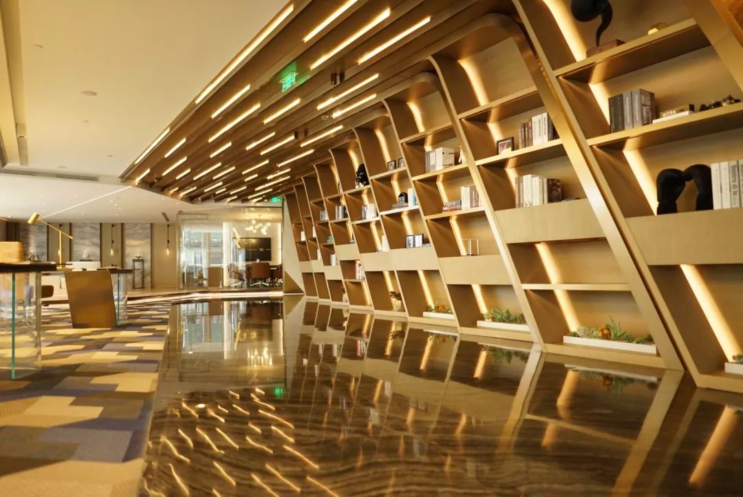 目前,项目大部分建筑主体均已完成结构封顶,建筑外墙的梯流瀑布形态玻璃幕墙也已安装完毕,工作人员正在加紧进行项目的外场工作。傍晚,建筑被灯光照亮,在渐变色天空的映衬下格外亮眼。