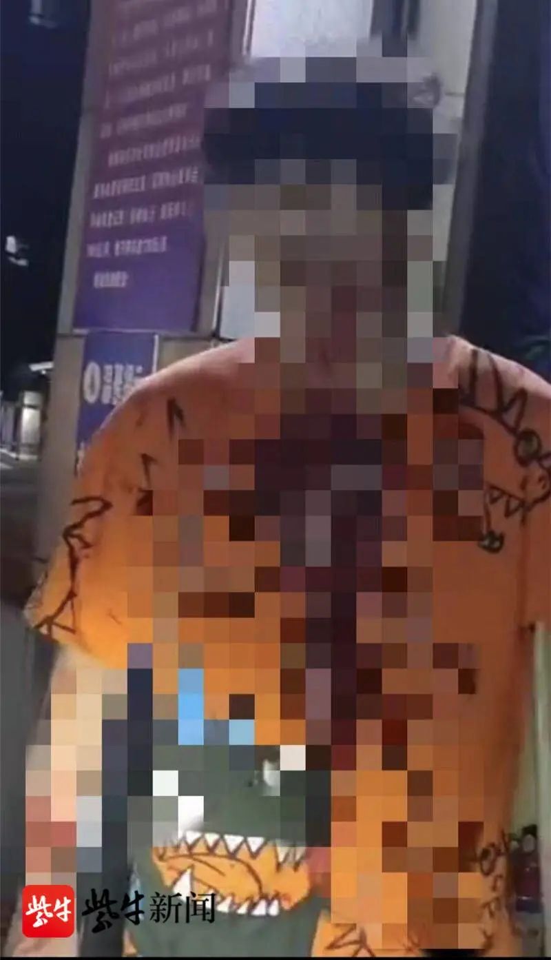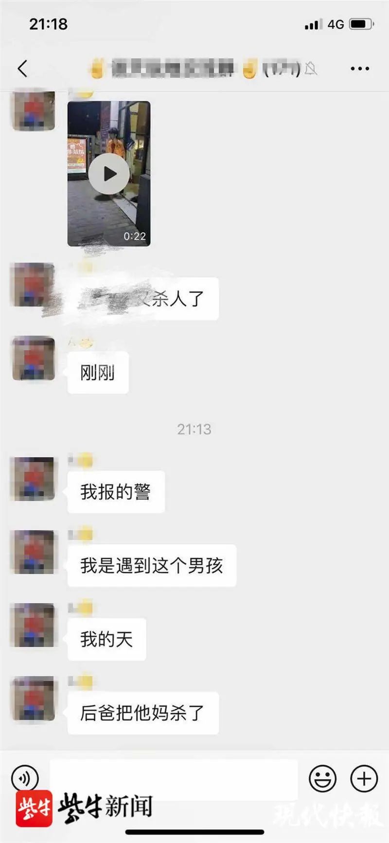 记者看到,在网上流传的这段视频里,一名身穿橙色汗衫的小伙子站在该小区大门口,身上沾满了鲜血,神色慌张。旁边人问他身上怎么这么多血?他回复说家里面后爸把他亲妈杀了。