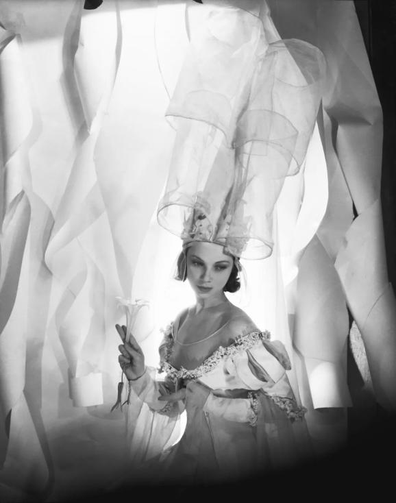 没有哪位摄影师像他那样持久而热烈地迷恋窗户。比顿从小就当摄影师,打扮妹妹们,在精心制作的布景中给她们拍照。他的早期作品中全是戏剧化的布景——撒满玫瑰的床铺、成卷的纸张、冰墙、凹槽柱、孔雀羽毛、亮片,还有波尔卡圆点。这些背景和布置不仅有趣而迷人,同时也能发挥功能。他在布景和服装设计方面的天赋让他在戏剧界收获了事业。但在积累了多年经验之后,他开始寻求让摄影变得更加直接的方式——为坚持本色的人们拍摄肖像。