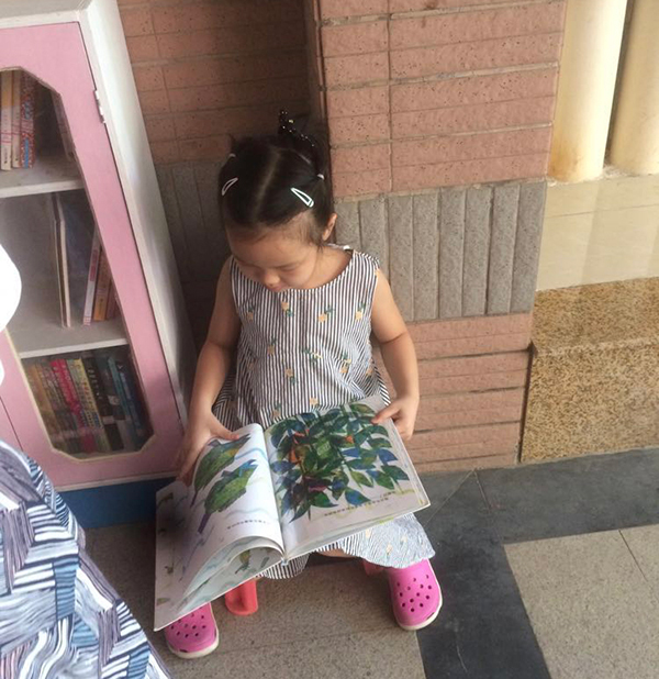 我们用了小区的公共空间,室外的架空层空地。我们放了些书柜,做成图书室,还募捐了很多图书。一开始,这些书柜其实放在另一个妈妈家里,虽然她很热心,但还是怕打扰她。大家就跟物业争取到了空间,有了固定空间,大家就募捐了更多的书,后来有三千多册。