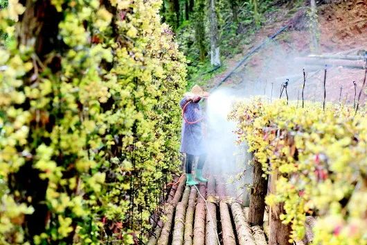 春播过后,在锦屏县林区,杉树上近野生种植的石斛枝条正逐渐舒展。种植的淫羊藿、白及等中药材以及樱花、楠木等树木已萌发吐绿。