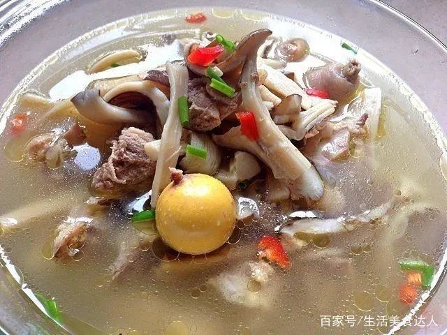 用母鸡同鸡油、鸡蛋、鸡肫一起下锅加水烧开打去血沫,换水加姜块清炖,炖至筷子可以插入鸡肉加盐、野菌鸡浓汤火锅底料、胡椒面、葱花即可下各种野生菌一同煮食。