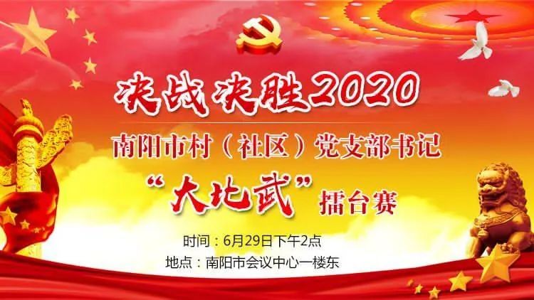 原标题:《东风吹,战鼓擂,擂台之上谁最美?——6月29日下午2点南阳网全程直播2020年度南阳市村(社区)党支部书记“大比武”擂台赛》