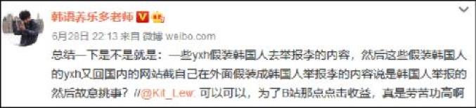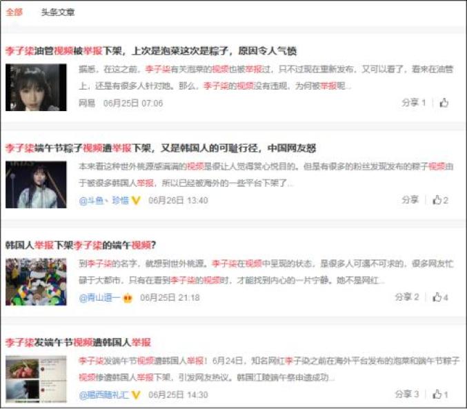 又例如,韩国人根本不吃粽子,也不会觉得这个是韩国食物,怎么会有“怀念妈妈做的粽子”与“(李子柒)发布了韩式粽子的视频”之类的说法?