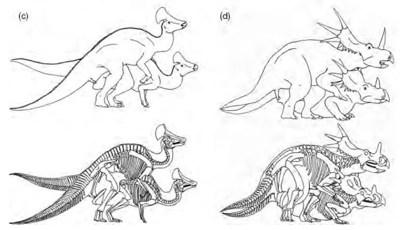 这种“单脚骑乘”的体位,如果是大型恐龙的话,雄性恐龙的体重会不会让雌恐龙负担过重骨折呢?根据一些力学的分析可以发现,生物在行走时就要承担两倍左右的体重,跑步等剧烈活动时的负担更大,因此科学家们认为,只要一只恐龙能够走路,要让另一只恐龙骑到自己背上就没问题。也就是说,不考虑蜥脚类(长脖子、长尾巴的植食性恐龙,这个类群是地球史上最大的陆生动物)这样的特大型类群的话,这种体位可以通用于多数种类的恐龙中。现今的犀牛或大象都能让另一半骑在自己身上交配,因此体型差不多的三角龙、鸭嘴龙等应该也不是问题。