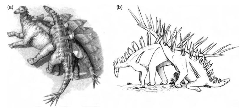 剑龙类最有名的就是它们背上的两排骨板,这可能是用来求偶展示、防御或是调节体温的,虽然看上去威风凛凛,交配时却会变成巨大的阻碍。