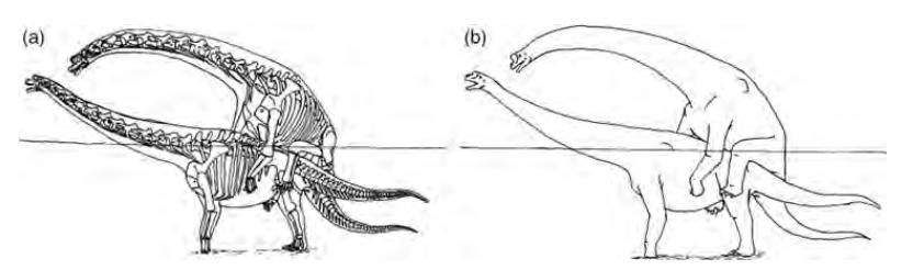 过去人们认为,这些巨型恐龙如果真的呆在水里,水压会把它们的肺压到根本无法呼吸,但2003年的一项使用电脑模拟的研究却发现,如果水只到这些恐龙的肩高的话,骨骼的空腔能让它们后半身浮起来并用前肢行走,呼吸也能维持正常。目前也在多地发现过只有前肢脚印的足迹化石,这也证明了这些巨型蜥脚类恐龙是能涉水游泳的。因此有学者认为,巨型恐龙也是运用水的浮力来交配的。