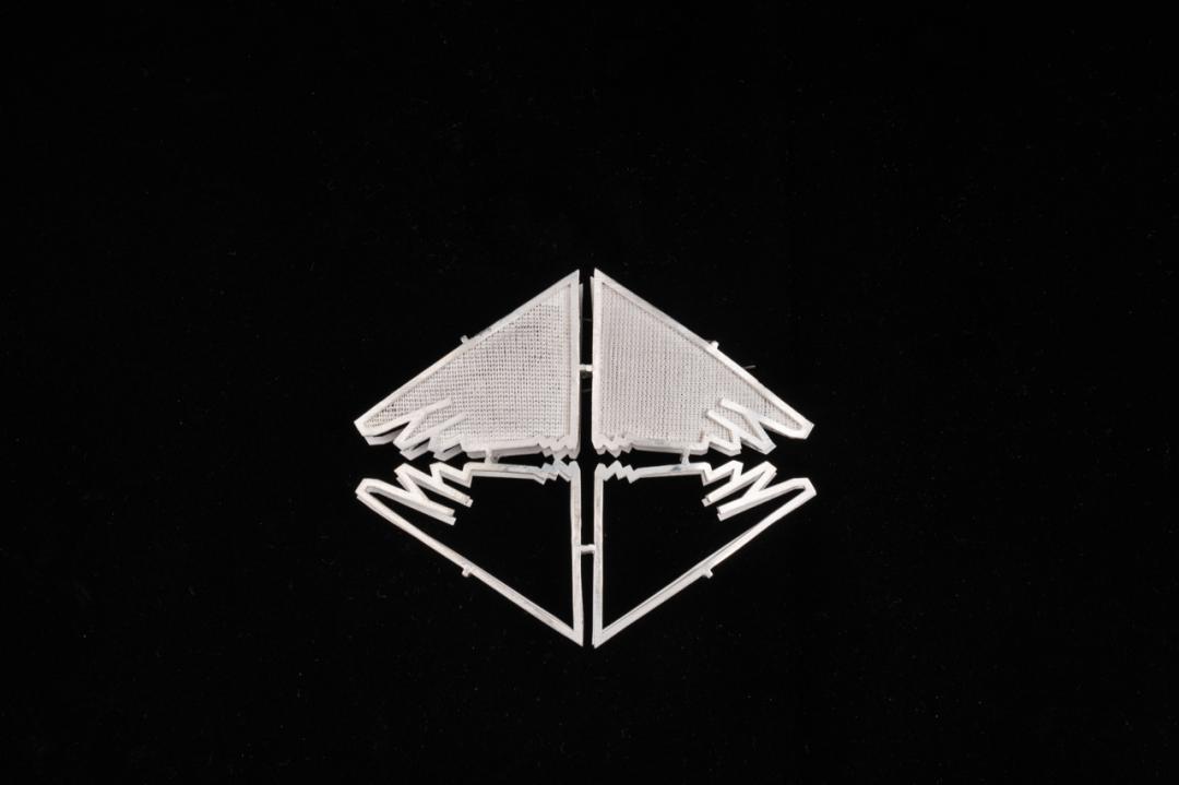 简介:中国古代木构建筑的斗拱元素历经沉淀,由原始到精致、由刚需到装饰,它富含着力学的演进与结构美学的追求。作者以山西宋式斗拱展开,形制纤弱因而选取肥皂材质轻薄,木作结构独特因此形制严整,侧重表达铺作重叠、相互榫卯的特征,希冀能将斗拱之风格结构,以手饰设计的语言再造——可佩戴的建筑。
