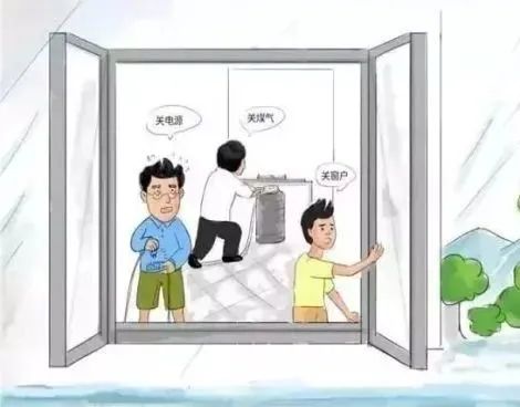 暴雨来临,关闭门窗,防止雨水扑入屋内,一旦进水立即关闭电源、煤气等设备。